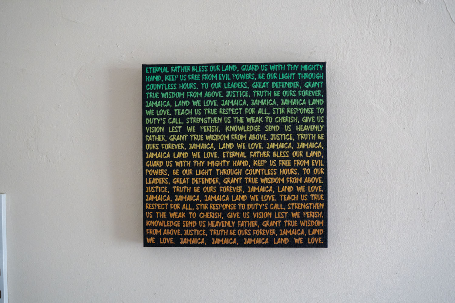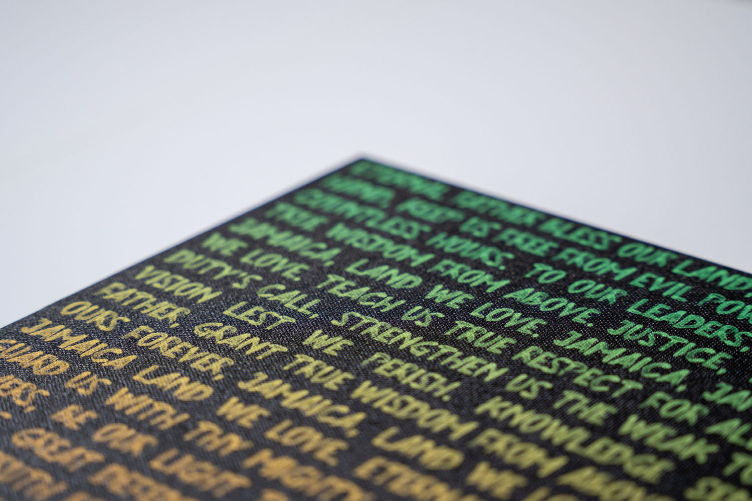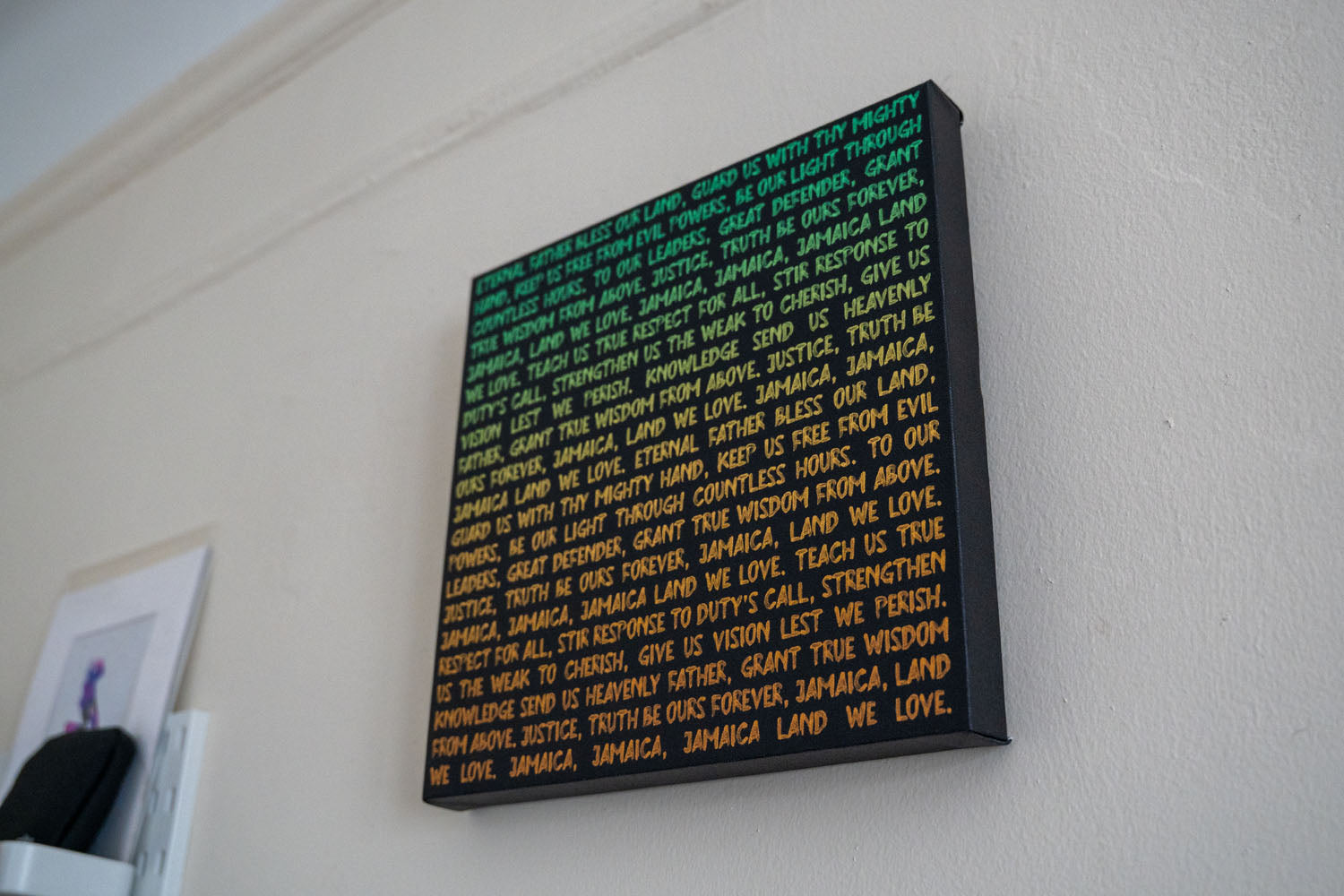 Celebrate the power and pride of Jamaica with this vibrant typography artwork featuring the full Jamaica National Anthem. Designed in a bold green-to-gold gradient inspired by the island’s iconic colors, this piece brings cultural reverence and lyrical beauty into any room. Perfect for Jamaicans at home or abroad, it adds meaning, history, and motivation to your walls.